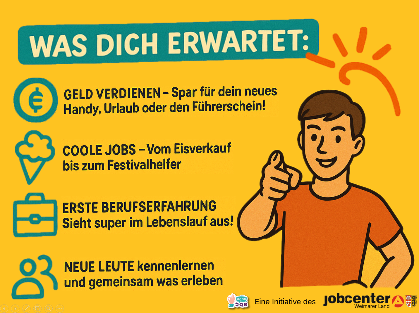 Das ist der richtige Schritt: Denn im Weimarer Land gibt es zahlreiche Arbeitgeber, die auf deine Unterstützung warten. Ob auf die Schul- bzw. Semesterferien begrenzt, oder auch darüber hinaus, hier findest du einen Job, der dir gefällt.