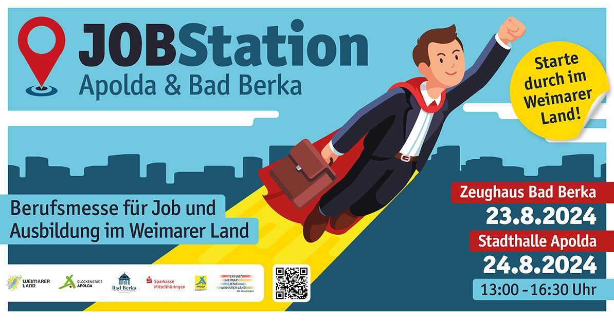 Organisiert durch die Wirtschaftsförderung des Landratsamtes Weimarer Land und unterstützt durch die Stadt Apolda, die Stadt Bad Berka, die Wirtschaftsförder-Vereinigung Apolda-Weimarer Land e. V. und die Sparkasse Mittelthüringen findet die regionale Berufsmesse „JOBStation“ zum achten Mal statt.